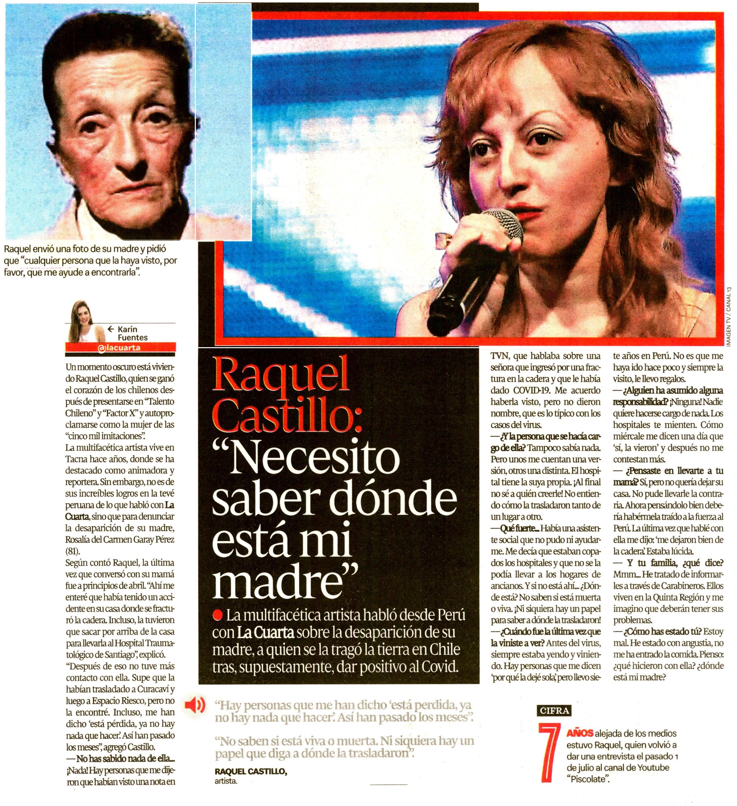 Raquel castillo se ha transformado en un personaje de culto de los programas de talentos raquel castillo (la de las 5000 imitaciones) lleva más de 5 años viviendo en perú, finalmente es animadora.
